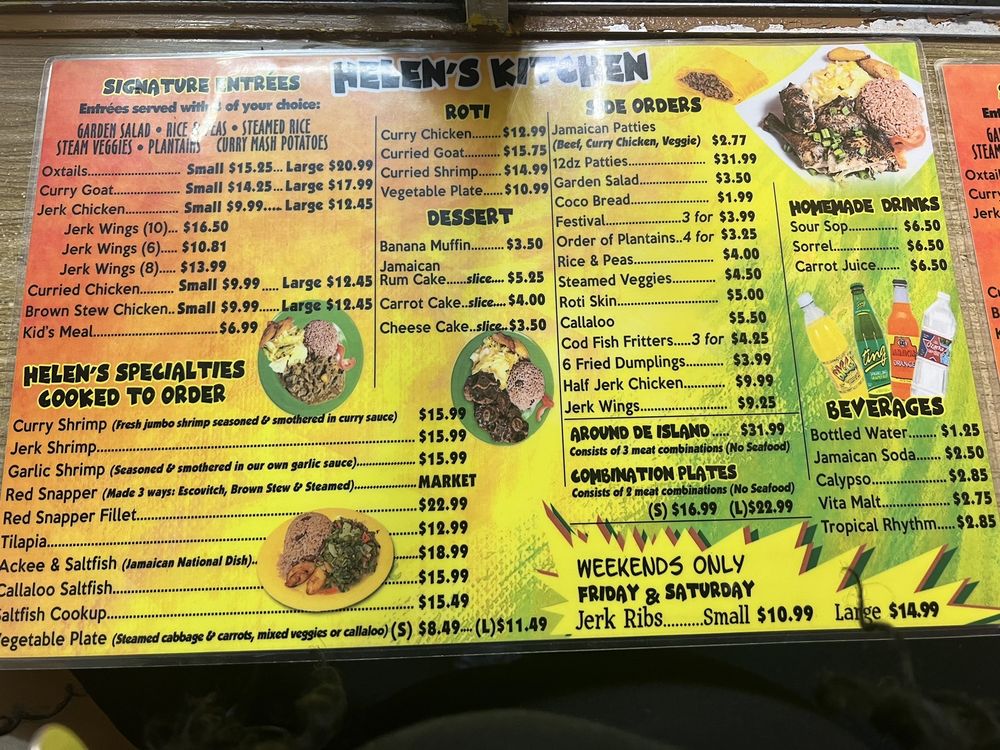 Introducing Helen's Kitchen, a Caribbean cuisine gem located in Houston, TX. This cozy spot offers delivery, takeout, and reservations, with a menu full of vegetarian options. Customers rave about the flavorful dishes, like the jerk ribs and oxtails, accompanied by sides such as curry mash and plantains. Don't miss out on the delectable chicken curry and beef patties. The warm ambiance and attentive service make dining here a delightful experience. Whether you're a seasoned Caribbean food lover or trying it for the first time, Helen's Kitchen is a must-visit. So, gather your friends and family for a scrumptious meal at this hidden culinary treasure.